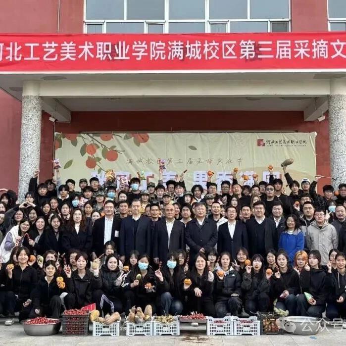 金秋送爽,喜柿连连,校园内的柿子树、山楂树硕果累累,金黄透亮的柿子、红艳诱人的山楂挂满枝头,构成一道靓丽的校园风景线。为丰富校园文化生活,弘扬劳动精神,增进师生对校园自然与文化的认同感,河北工艺美术职业学院满城校区举办了以“秋实工美,果香满园”为主题的第三届采摘文化节。学校党委书记孙斌、党委副书记赵云耕、纪委书记王立新、副校长卫进东出席活动。