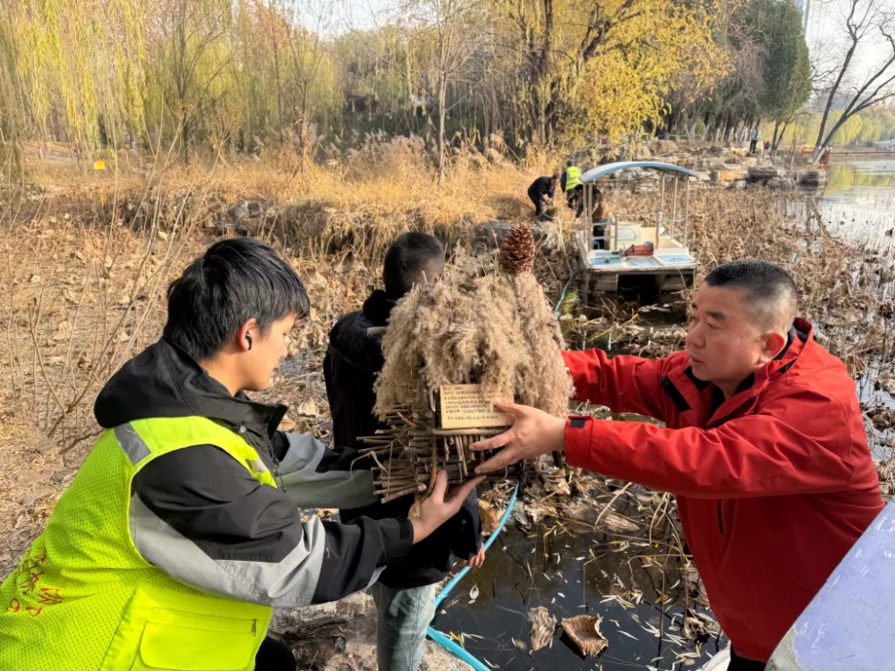 活动中,党员教师牵头组建由设计、手工制作等专业师生构成的志愿服务队。团队通过实地勘察、习性研究和环保材料创新应用,精心设计制作了与自然环境相融的“暖巢”,将生态文明理念落到实处。这既是一次专业的实践锤炼,也是一堂生动的生态文明思政课。