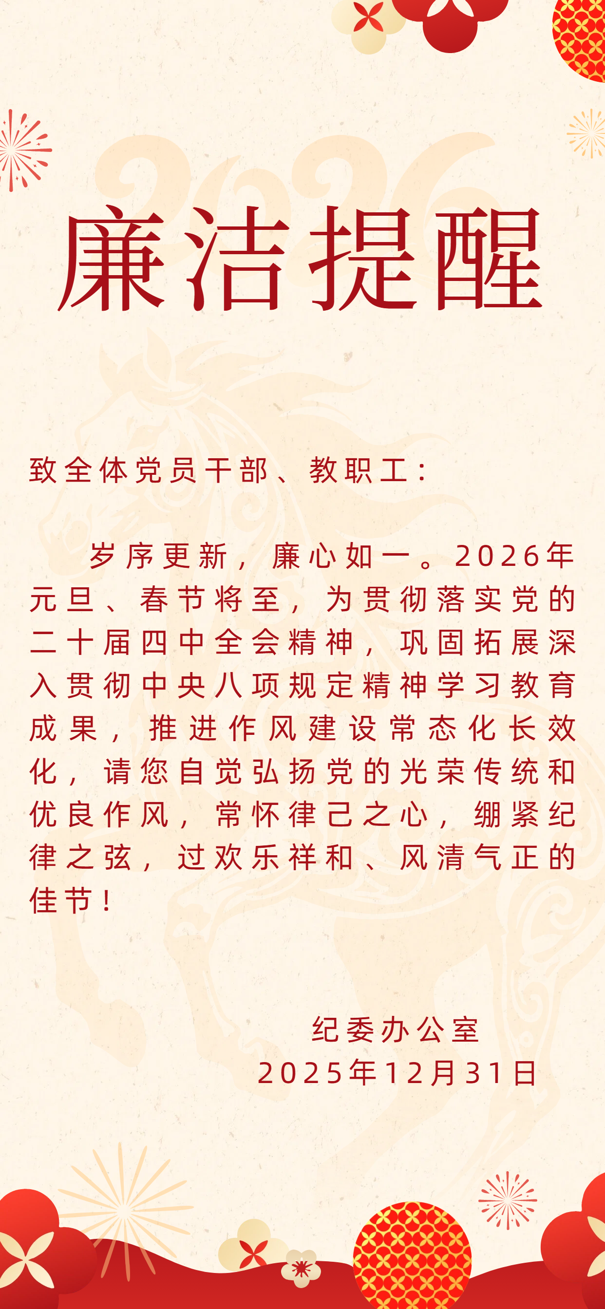 2026年元旦春节廉洁提醒