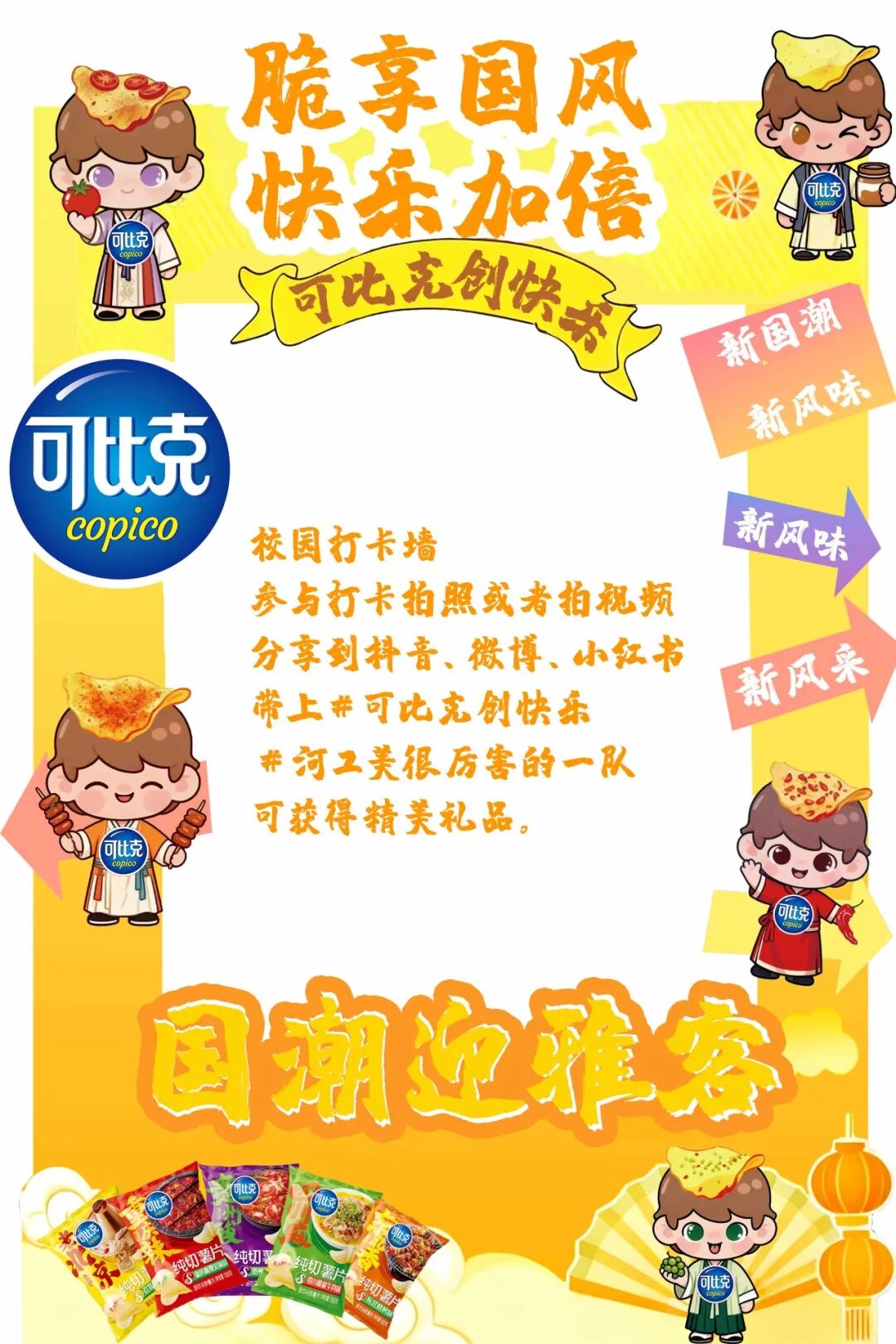 一口酥脆,一味国风,一段青春记忆。这个秋天,让可比克陪你解锁校园新玩法,把快乐加倍,把文化传承!我们在活动现场等你,不见不散~