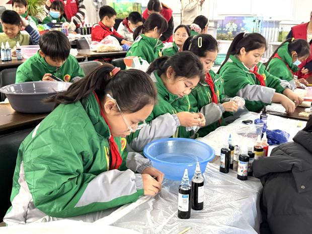 为弘扬中华优秀传统文化,推动非物质文化遗产走进校园、融入美育,12月17日,视觉传达设计系党总支师生一支部走进保定实验小学天威校区,开展了一场别开生面的“非遗扎染进校园”美育公益课活动。