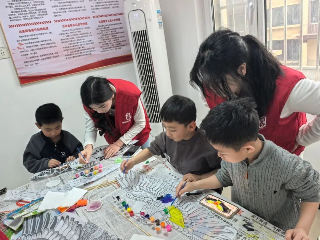 活动现场暖意融融,欢声笑语不断。支部团员青年们化身专业志愿指导老师,率先为家长和孩子们带来风筝文化小课堂,生动讲解风筝的起源、传统制作流程与民俗寓意,让大家在动手创作前感受中华传统民俗的独特魅力。彩绘环节是本次活动的核心,面对零基础的社区居民,志愿者们耐心细致、手把手指导,从线条勾勒的技巧到色彩搭配的秘诀,逐一答疑解惑,鼓励孩子们大胆发挥想象,将心中的春日美好与童真童趣绘于鸢面。