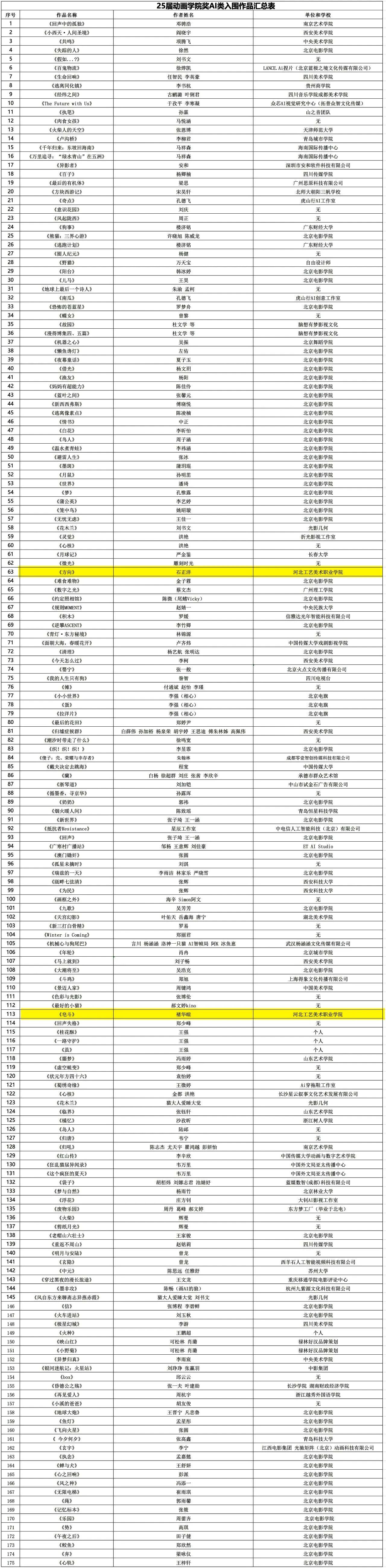 部分入围名单