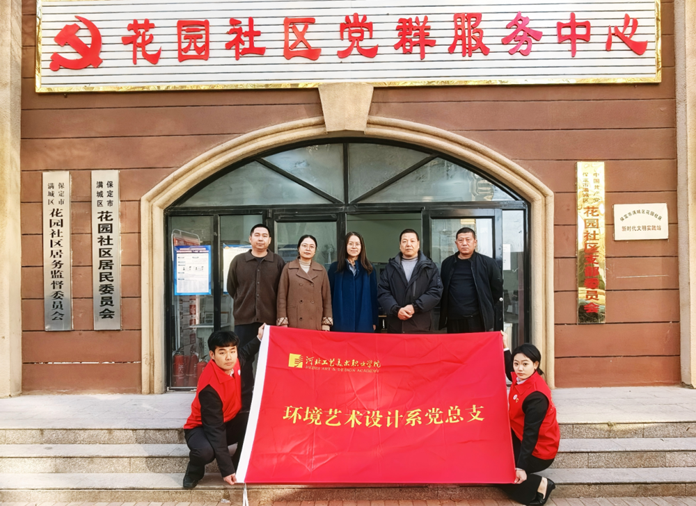 仪式由满城镇花园社区党支部书记、居委会主任马秋贺主持,河北工艺美术职业学院环境艺术设计系党总支书记尹小晨、团总支副书记杨雪,满城区满城镇社区办主任段大鹏,师生代表和社区工作人员共同参与活动。